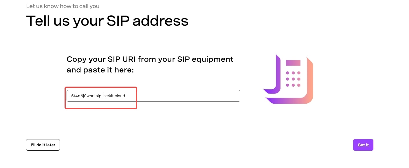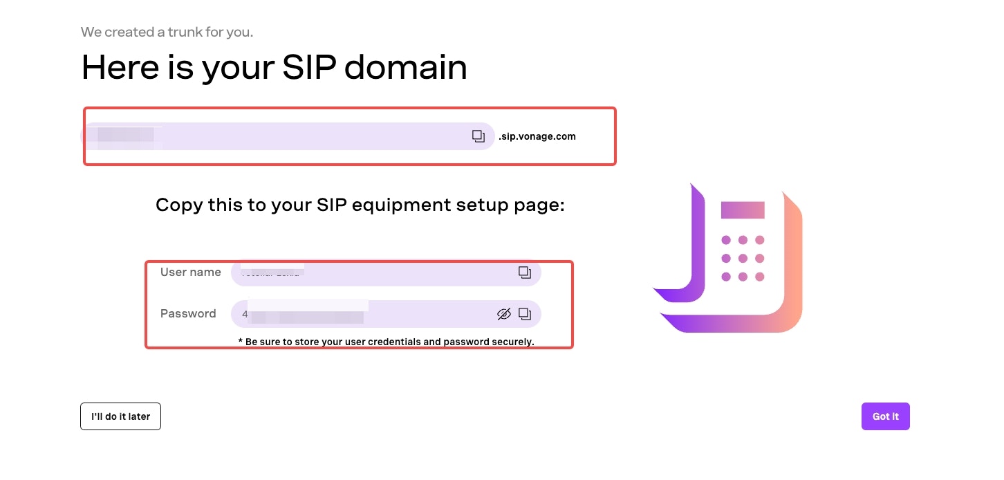 - the termination SIP URI and the username and password here is important, we would use it in later steps, please take notes of it.